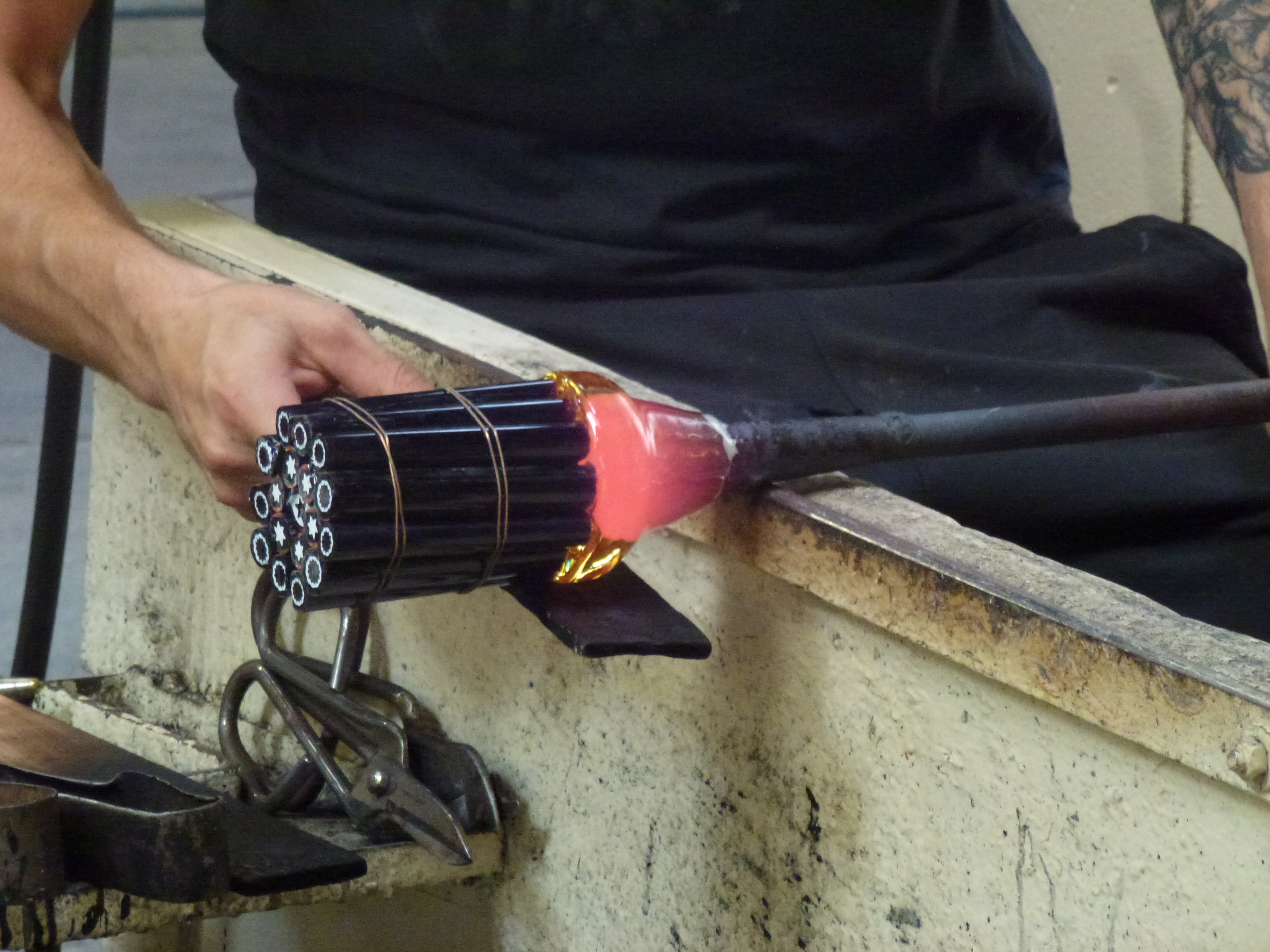 When the crystal artiste removes the crystal that has been combined with the pattern and is in a molten state, the second craftsman holds another blowpipe attached to the other end of the molten crystal, and quickly pulls out a few meters long fine crystal mandrel before the crystal or enamel cools down , Its diameter is only a few millimeters, and then cut into sections. The molded stem is then cut into small pieces of about 10 mm each, and the crystal craftsman who specializes in producing thousands of flowers is erected in the iron pot to form a flower bed pattern.