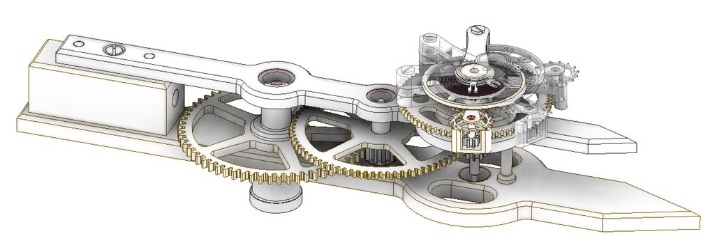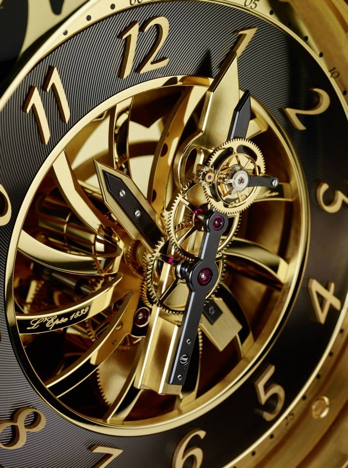 The spherical clock by Vincent Calabrese design, escapement system is more complicated. In order to enhance the visibility of the flying tourbillon and enhance its charm, the team decided to rotate all the rotating systems inside the spherical clock in a counterclockwise direction.