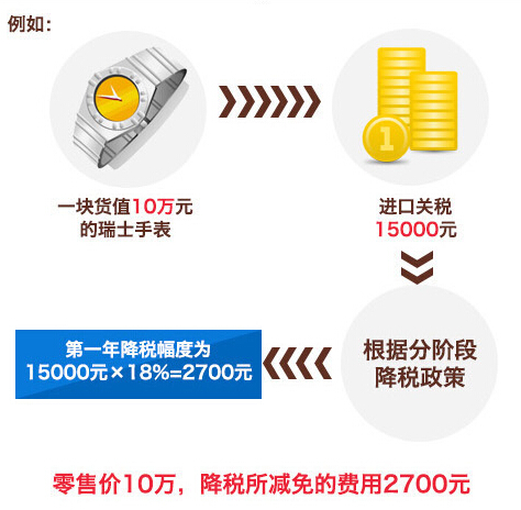 The implementation of the China-Switzerland FTA is implemented today. The majority of friends and fans may have noticed that the Chinese side is reducing its tariffs on Swiss goods, including watches. According to the statistics of the General Administration of Customs, in 2012, China imported a total of about 2.1 billion U.S. dollars of watches and clocks from Switzerland, which are divided into 59 Customs Tariffs, including the clock, watches, timers and spare parts for watches and clocks. The import tax rate ranges from 3% to 23%. But we do not be too excited, high-end watches will not be too much price cuts. For example, according to the agreement, a Swiss watch worth 100,000 yuan will be reduced by 2,700 yuan this year.