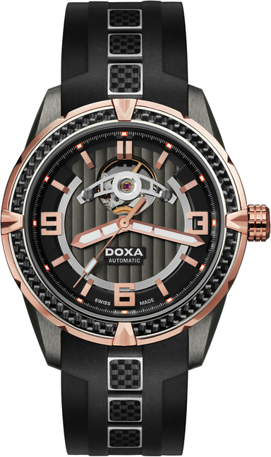 D166RBK watch the disk surface is used in the pattern of the Big Three, in 3,6,9 using a larger number of Arabic numerals, the other time scale is used in a rectangular display, and above the pointer there is the luminous coating, Make it legible at all times. The 43mm titanium bezel features clear carbon fiber and sparkling gold plated rose bezel on the surface, making the bezel tougher by adding carbon fiber.