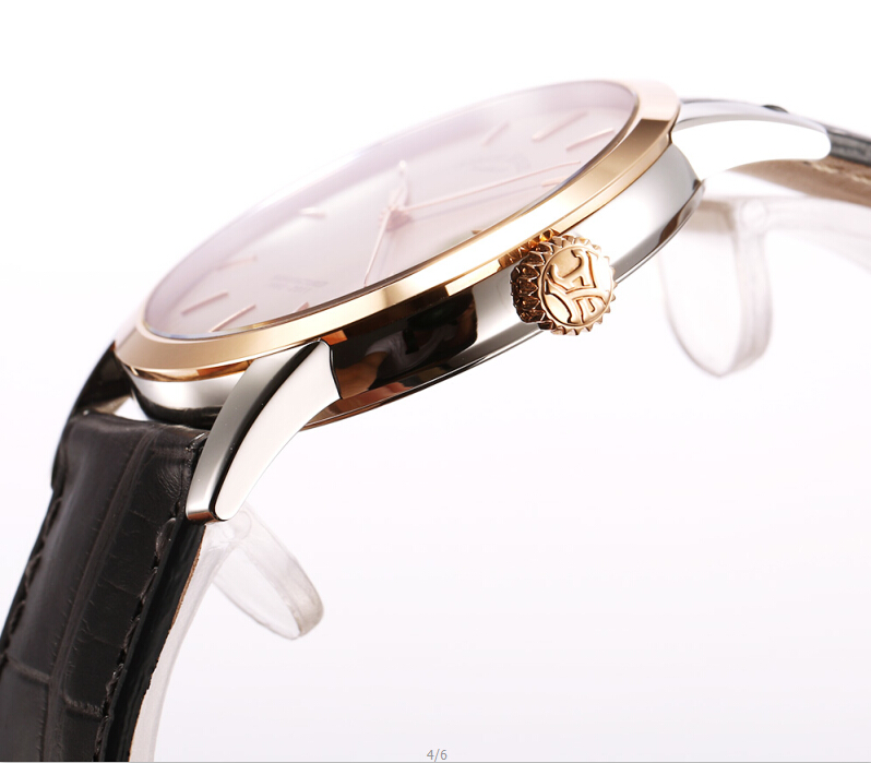 On the contrary, dark brown large section crocodile leather strap has not done too much processing, crocodile cortex simple original texture and fish line suppressed edges more texture, which is also the finishing touch of a classic watch, But also just in the low-key and restrained taste of mature men complement each other.
