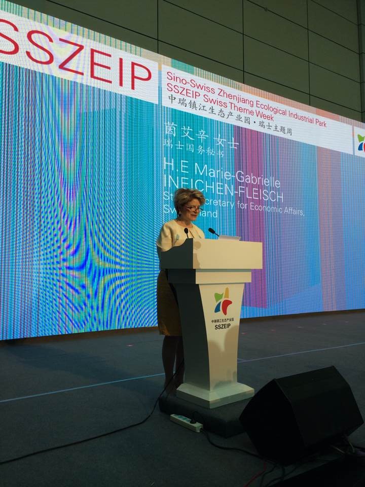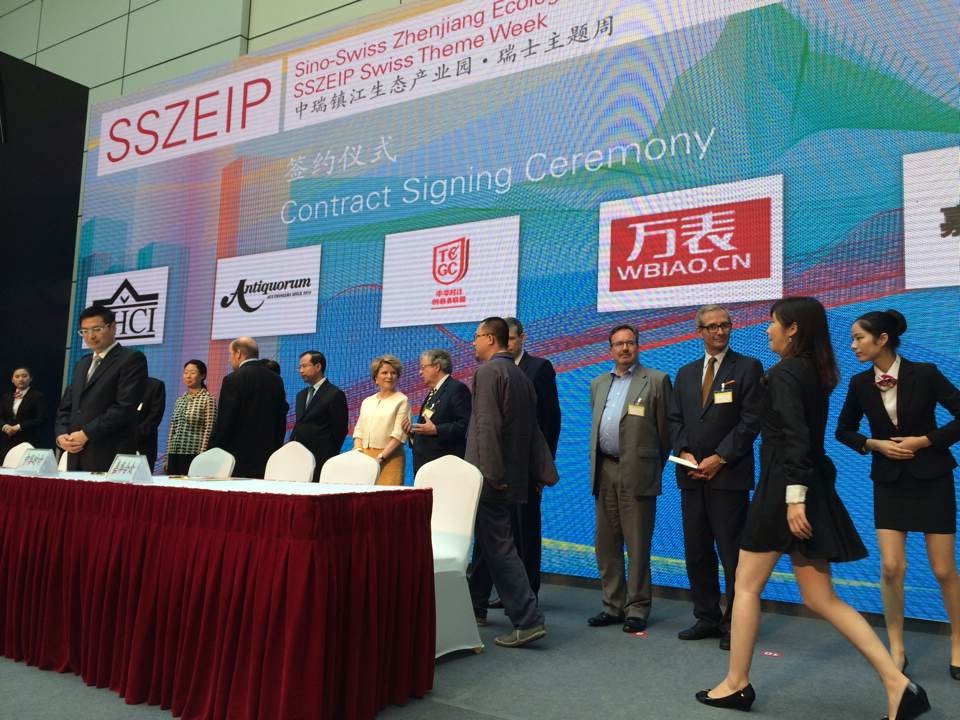 On July 2, the Swiss theme week activity of Zhongrui Zhenjiang Eco-Industrial Park led by the Ministry of Commerce was opened in Zhenjiang, Jiangsu Province. Ms. Inasine, State Secretary of Switzerland attending the meeting, and Mr. Daniel Kuhn, CEO of Switzerland Investment and Trade Promotion Agency made a speech. At the opening ceremony, Mr. Xiao Xiao, President of Wan Wang Network invited to participate and the chief representative of Antigua and Barbuda, , China Watch Association collection research vice president Chang Wei podium sat.